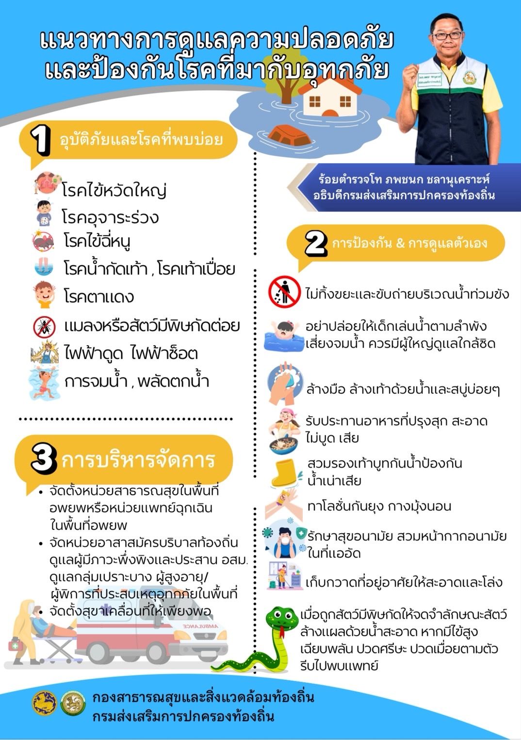 เเนวทางการดูเเลความปลอดภัยเเละป้องกันโรคที่มากับอุทกภัย
